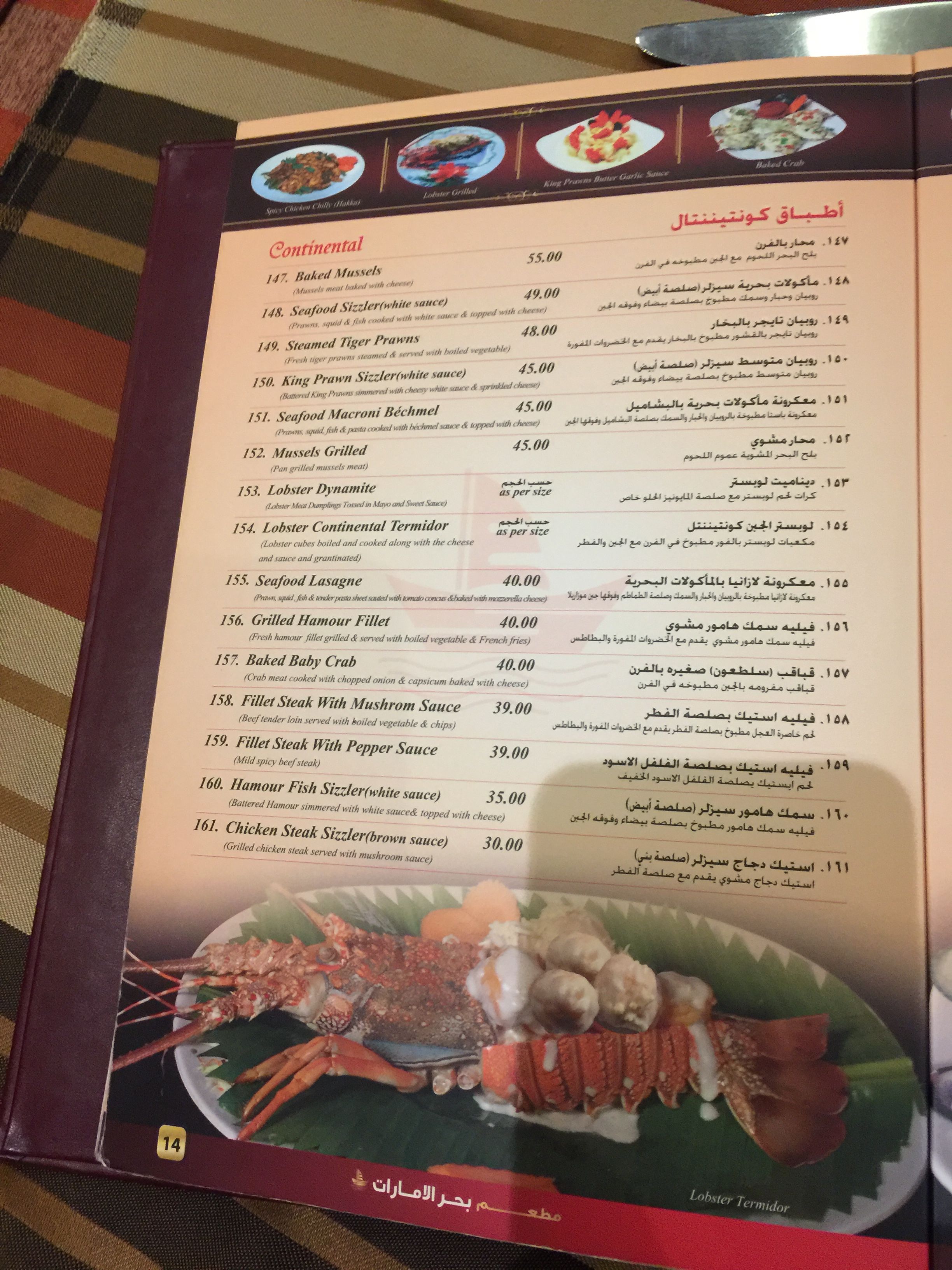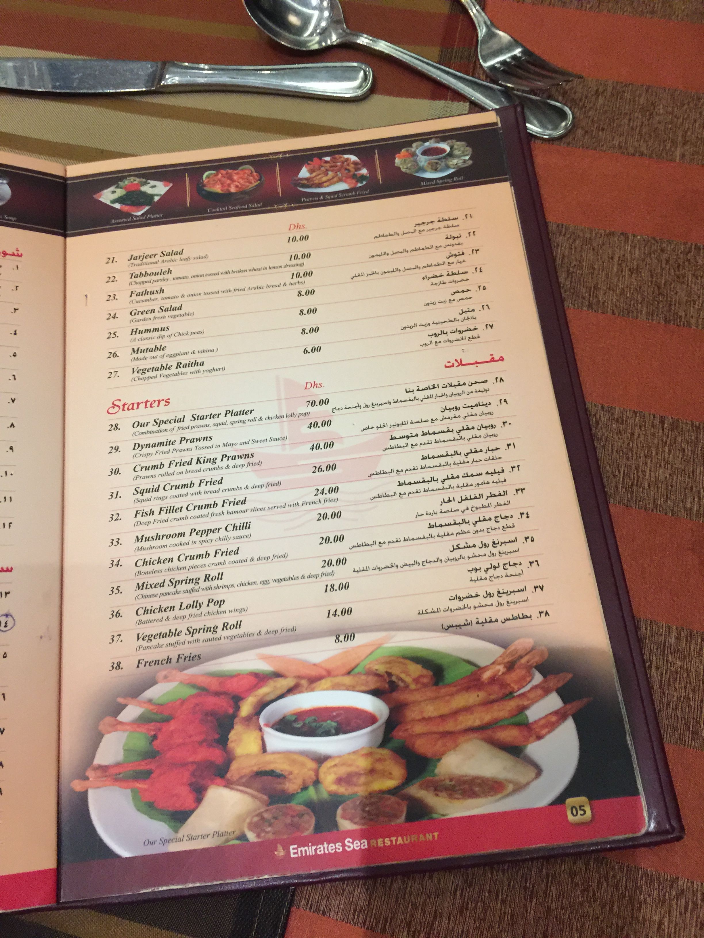 Emirates Sea Restaurant Sharjah Menu Prices Restaurant