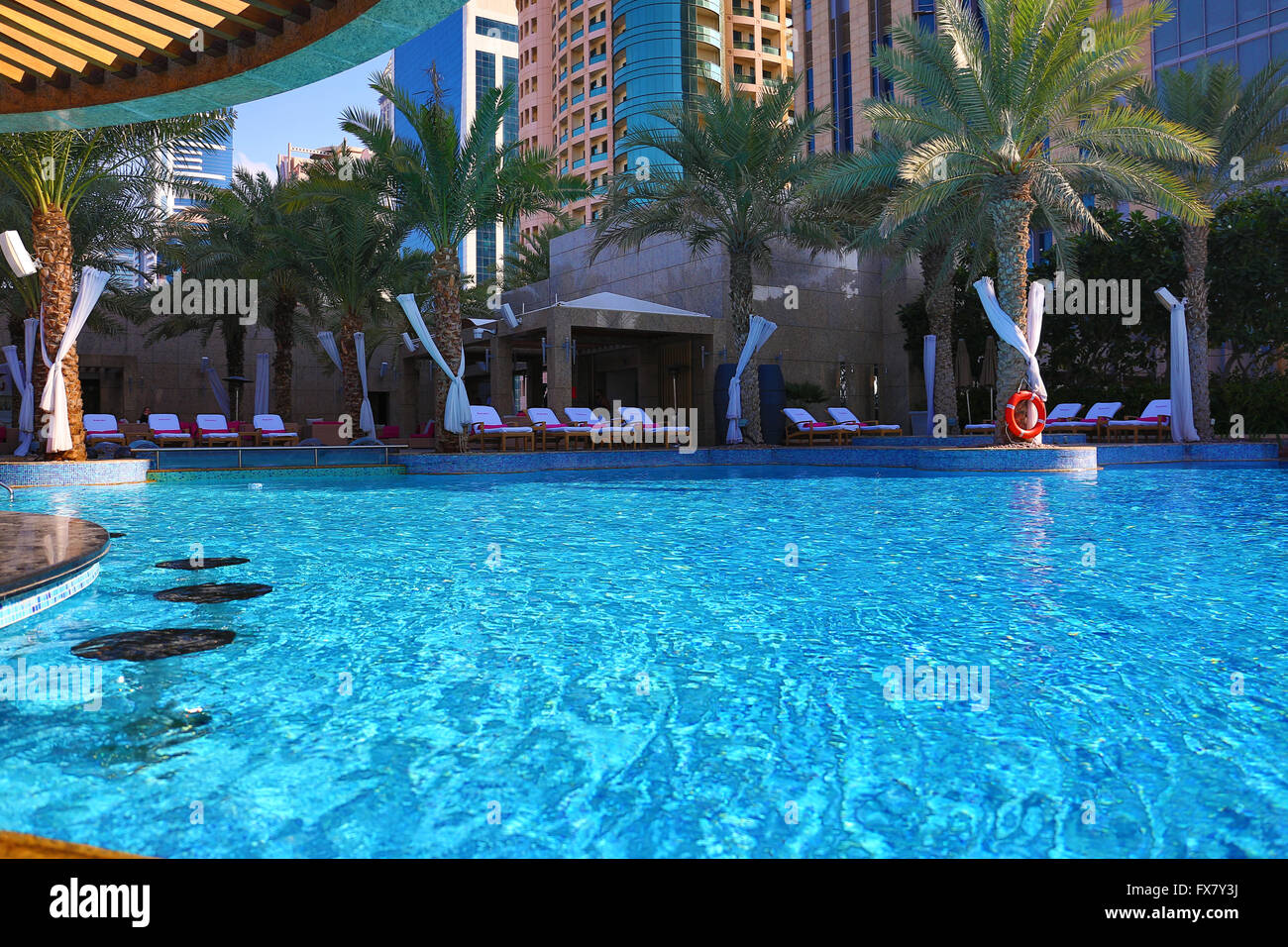 The Swimming Pool Deck At The Shangri La Hotel Dubai Uae Stock